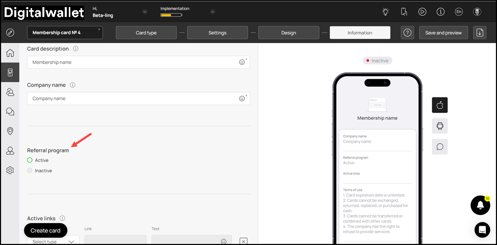 4. Choose whether you want to include referral program using the Active and Inactive radio buttons under the Referral Program heading.