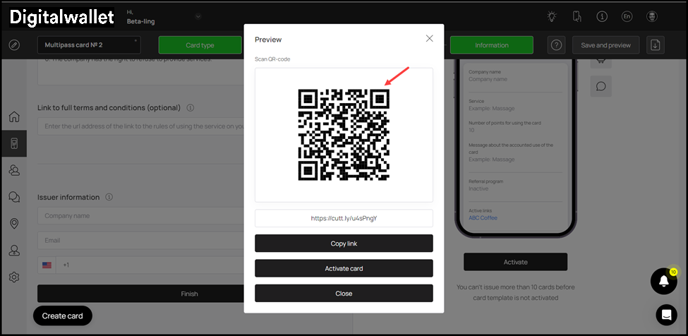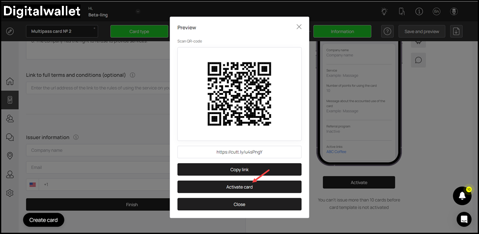 10. To activate the template, click the Activate button under the card preview.