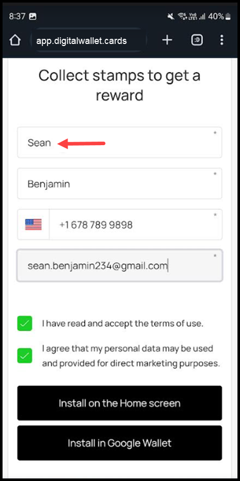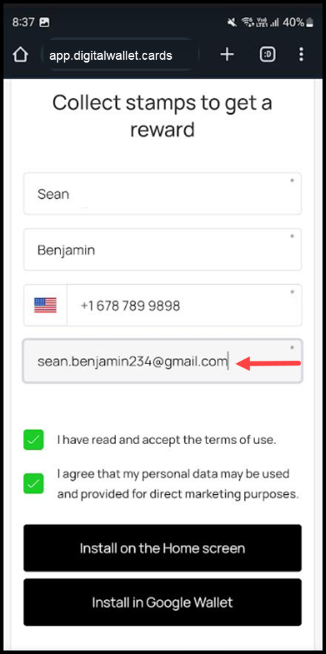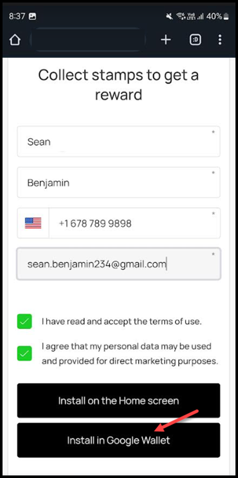 7. To install the card in Google Wallet, click the Install in Google Wallet button.