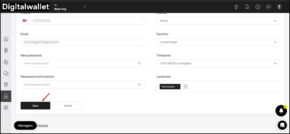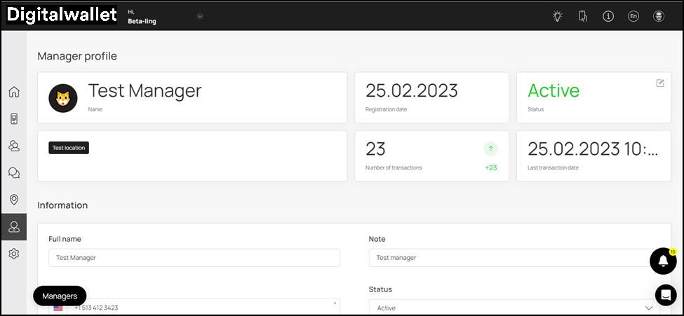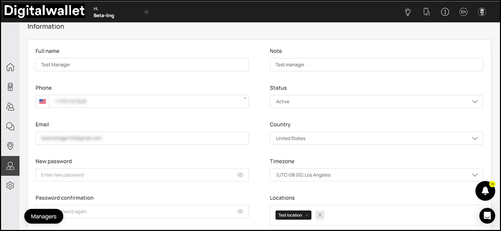 5. Next up is the Information section where the details of the manager account are displayed in editable view.