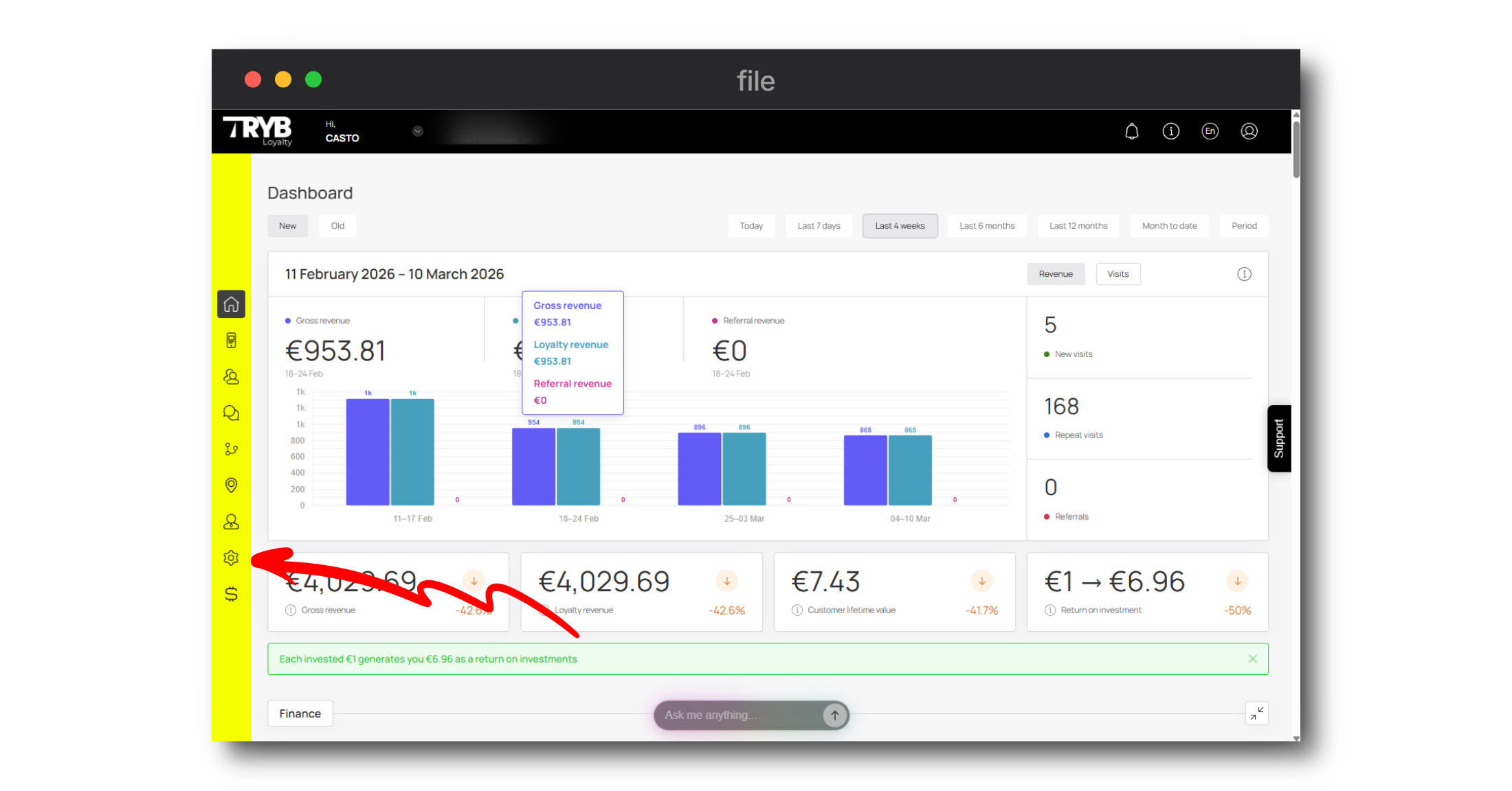 1. Para acceder al módulo Settings, vaya al menú de la izquierda después de iniciar sesión.